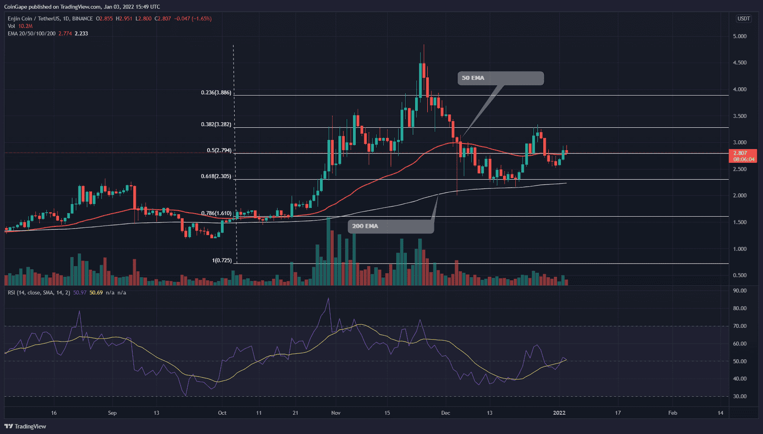 ENJ Coin struggles to sustain over 200 EMA of four-hour chart