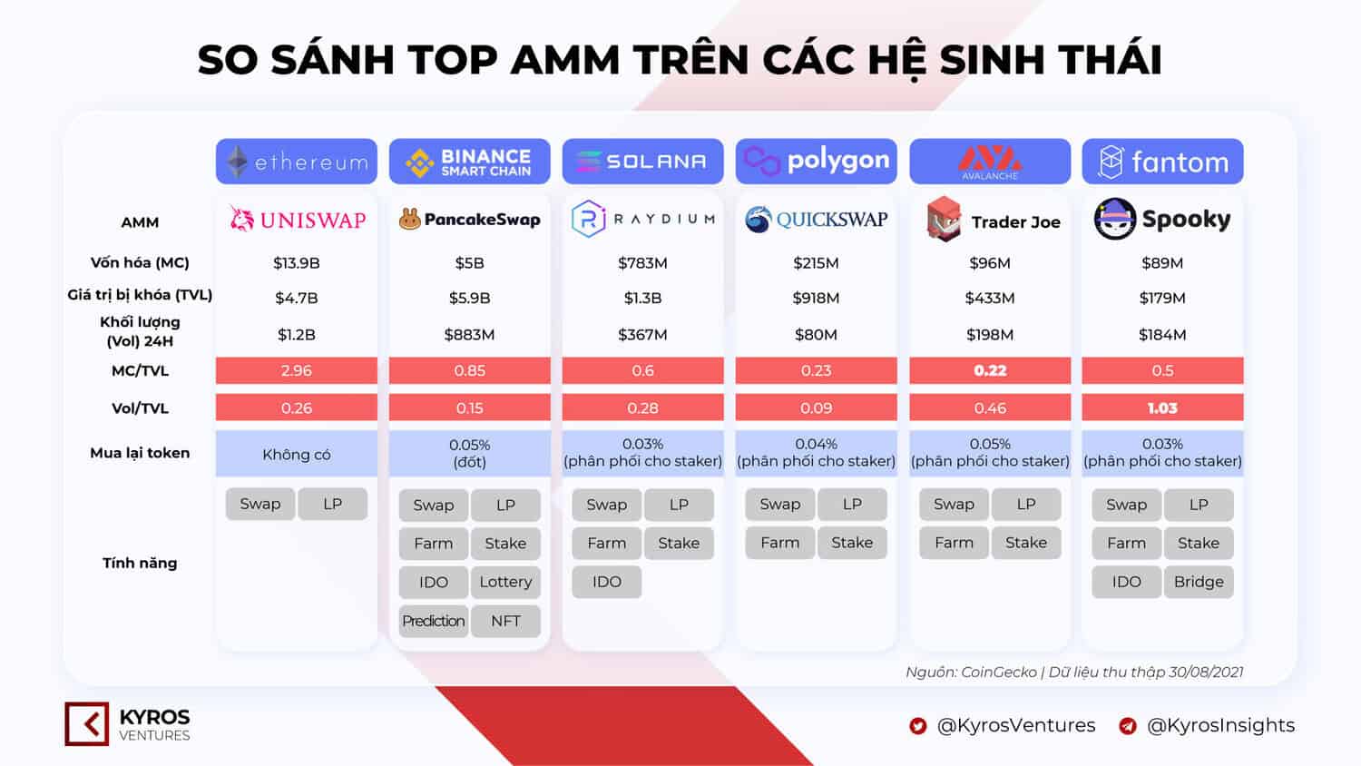 TVL is the main indicator when it comes to AMM. MC / TVL as launched by Kyros it is also a notable “gem seeker”.