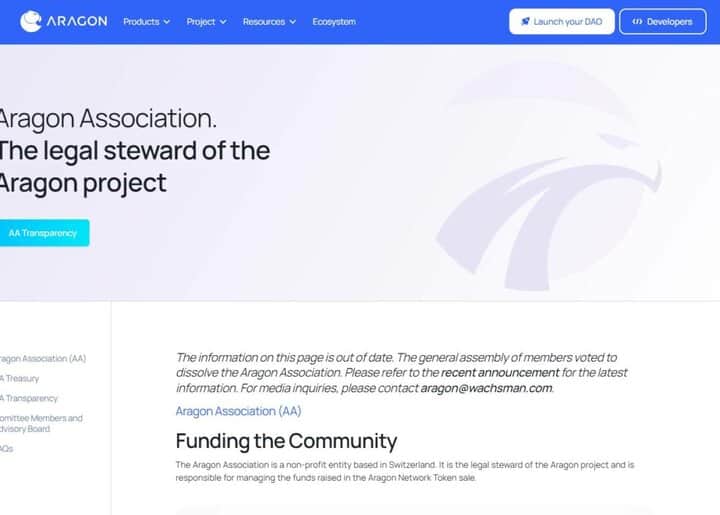 Aragon Association dissolved, liquidation of ANT tokens announced