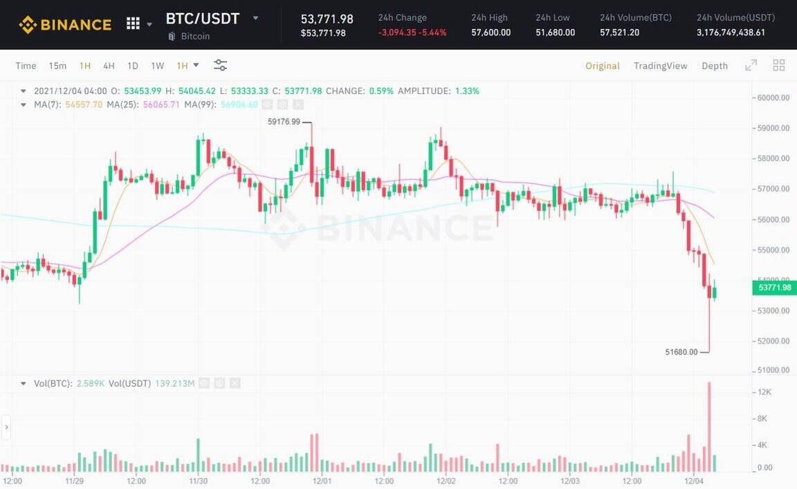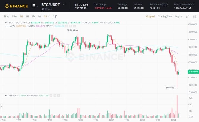 After a series of four consecutive days of sideways motion to the USD 56,000 – USD 59,000 region, the late evening Bitcoin (BTC) value of December 3rd and early morning December 4th was the moment once again strongly corrected, going from the peak of the 24 hrs from 57,600 bucks to 51,680 bucks, equal to a reduction of ten.three% of its worth.