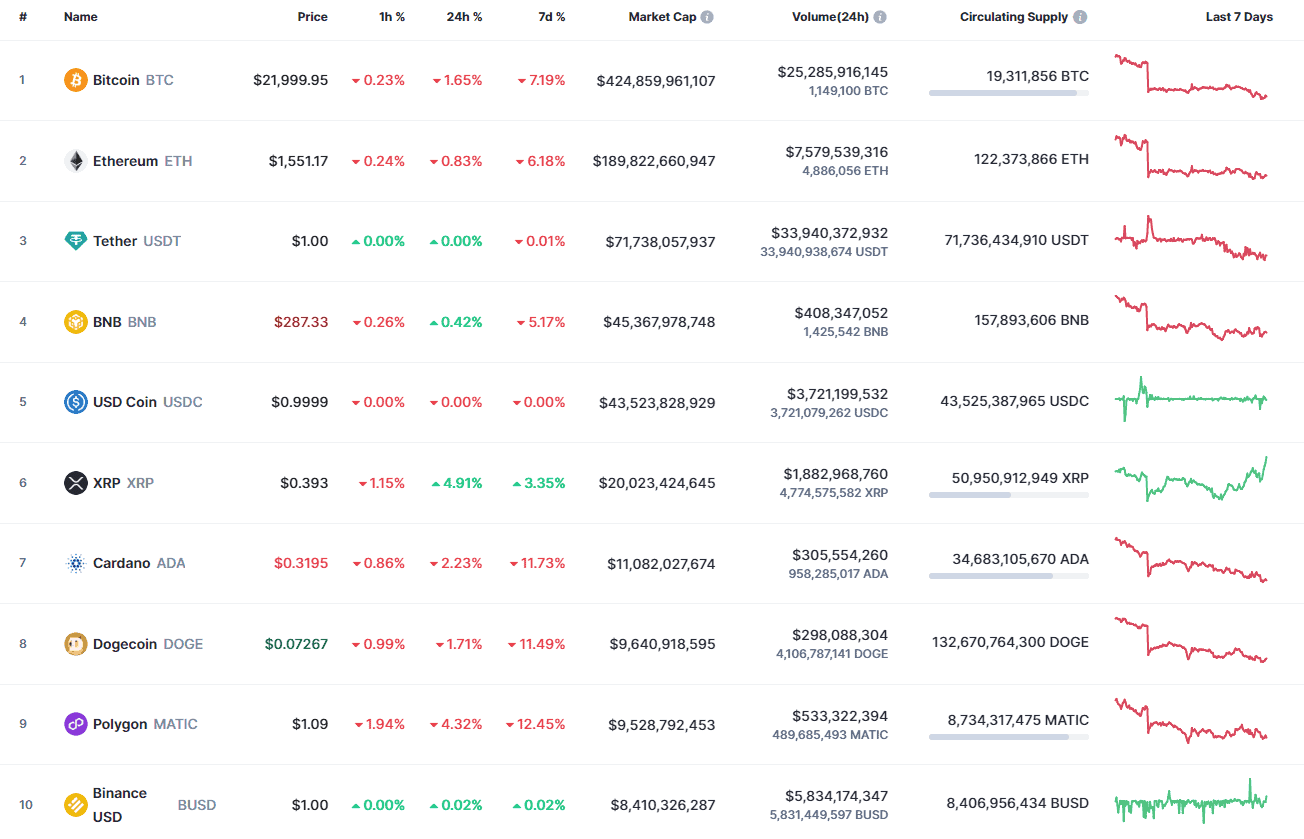 XRP is an exception to the rule, up just about five% in the previous 24 hrs.